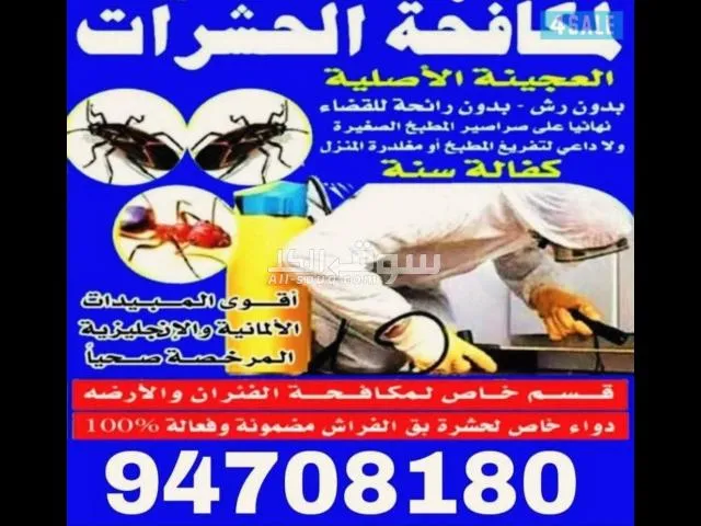 آباده تامه لمكافحة الحشرات . والقوارض في جميع مناطق الكويت أرخص الأسعار كفالة سنه . يوجد لدينا جميع المواد الالمانيه والانجليزيه والامريكية المرخصه من وزاره الصحه بدون رائحه للقضاء على.. البق النمل الصراصير والنامس . البريعص. الفئران والنحل والارضه " والثعابين .. القضاء نهائيا علي جميع انواع الحشرات والقوارض للمنزل .. الشركات ... الصلونات... الاسواق .. الجميعات ا...