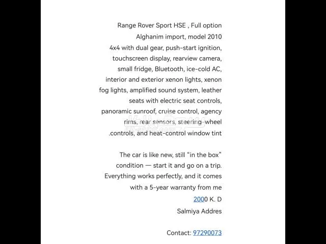 رنج روفر سبورت HSE کامل المواصفات وارد الغانم موديل 2010 بريطاني اصلی، دبل جير 4x4, تشغيل بصمه، شاشة لمس، كاميرا خلفيه، ثلاجه صغير، بلوتوث، مکیف ثلج، لیتات داخلي و خارجي زنون