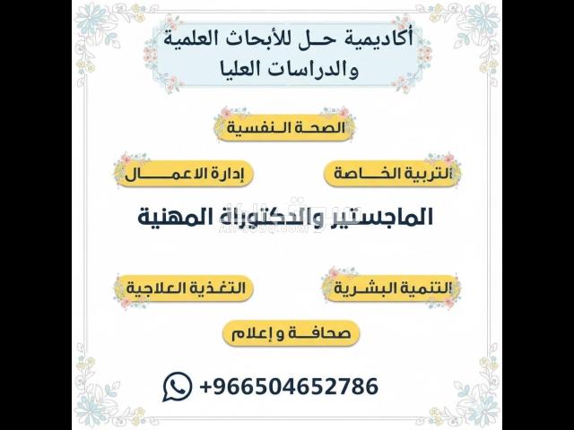 كتابة رسائل الماستر والدكتوراه باحترافية ودعم أكاديمي متكامل يشمل حل واجبات الجامعة كتابة بحث ماجستير إدارة مشاريع PM كتابة رسالة ماجستير أمن سيبراني حل كيس استدي دراسة حالة اعداد مشروع تخرج برمجة تصميم عروض بوربينت تسوية بحث تخرج بحوث قانونية حل اسايمنتات HR حل واجبات CIPD #رسائل_ماجستير #رسائل_دكتوراه #دراسات_عليا #بحث_علمي #كتابة_أبحاث #تحليل_إحصائي #SPSS #خطة_بحث #قانون #شريعة #محاسبة #إدارة_أع...