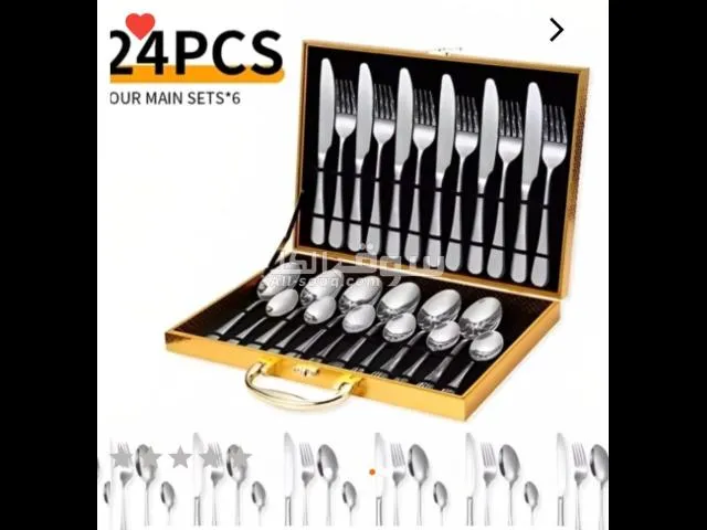 طقم مائده فاخر مكون من ٢٤ قطعه مصنوع من فولاذ مقاوم للصدا304 عالي الجوده مقاوم للصدا والتاكل يشمل 6 معلاعق طعام 6ملاعق صغيره 6 شوك طعام 6سكاكين تصميم انيق بلون فضي كلاسيكي يناسب جميع انواع المائده ياتي مع علبه فاخره مناسب كهديه وللمناسبات مثالي للاستخدام اليومي اغتنم الفرصه سعر داخل العرض 8 دينار يوجد توصيل للطلب من خلال رسايل الصفحه فقط